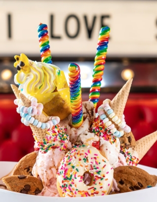 Diners can indulge in Insane Milkshakes, served in chocolate-covered mugs, and piled with sweet treats, like fried Oreos, donuts and even a giant cake slice. Or grab your 12 closest friends and take on the sensational King Kong Sundae, which serves up to 12 people with 24 scoops of ice cream covered with sprinkles, gummy bears, caramel sauce, fudge sauce and giant swirl pops. Whatever you decide to enjoy there is something sweet for all, so be sure to book reservations ahead of time as the Sugar Factory is immensely popular!